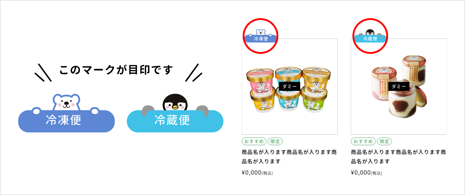 当社で取り扱う商品は冷凍便・冷蔵便・常温便がございます。