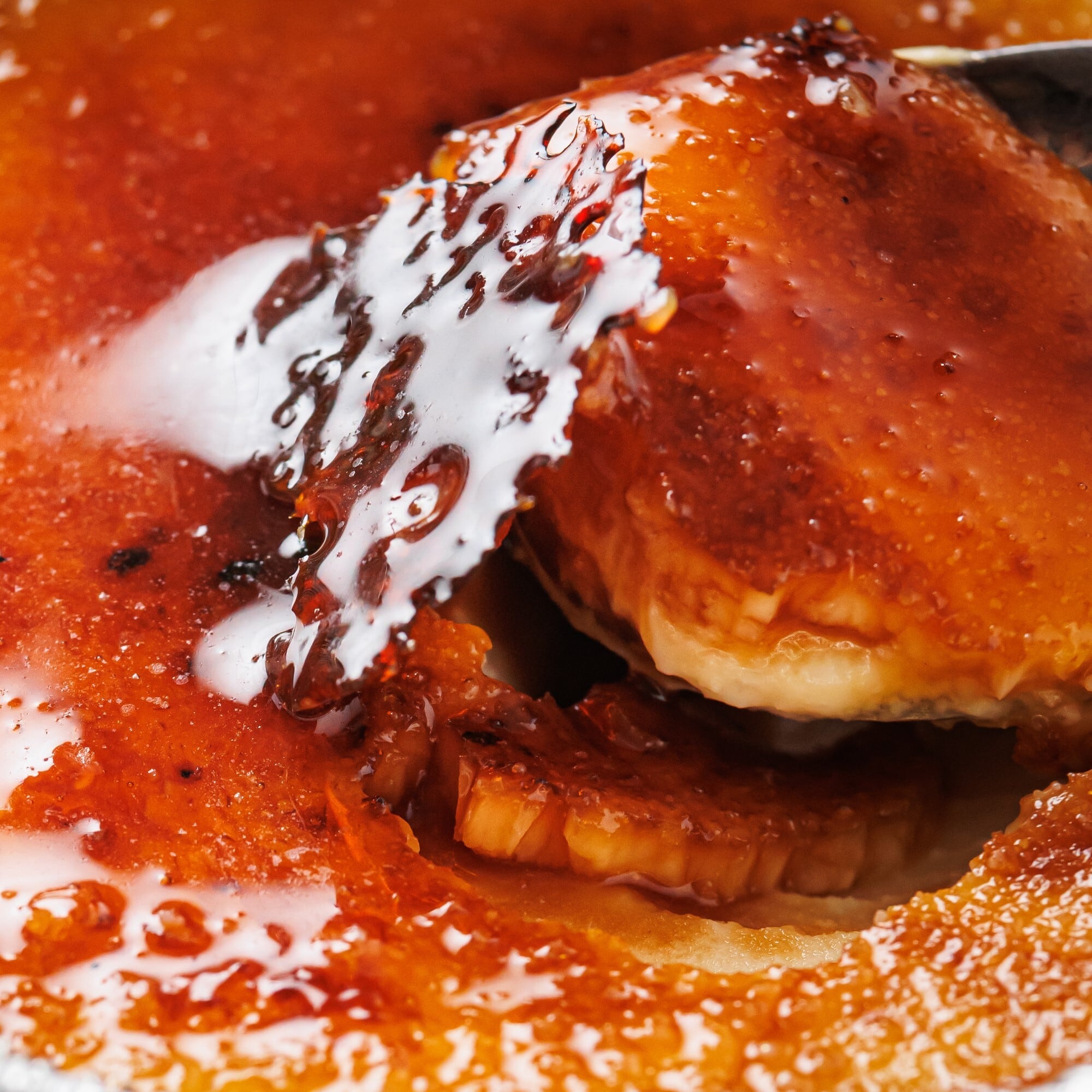 牧場の新鮮な牛乳を使用し、低温でじっくり焼き上げたクリーミーで濃厚な本格カタラーナです。2度焼きしたキャラメリゼのほろ苦い味わいがアクセントになっています