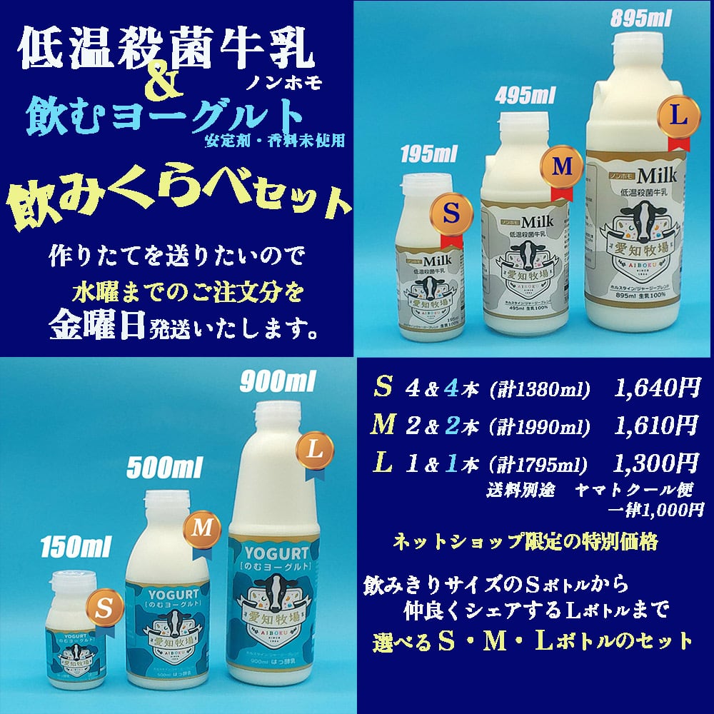 金曜日発送!飲みくらべSセット(低温殺菌牛乳195ml×4本 飲むヨーグルト150ml×4本)