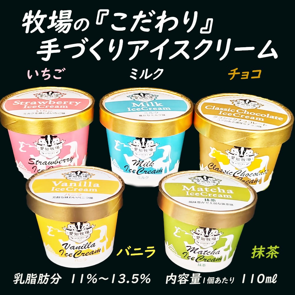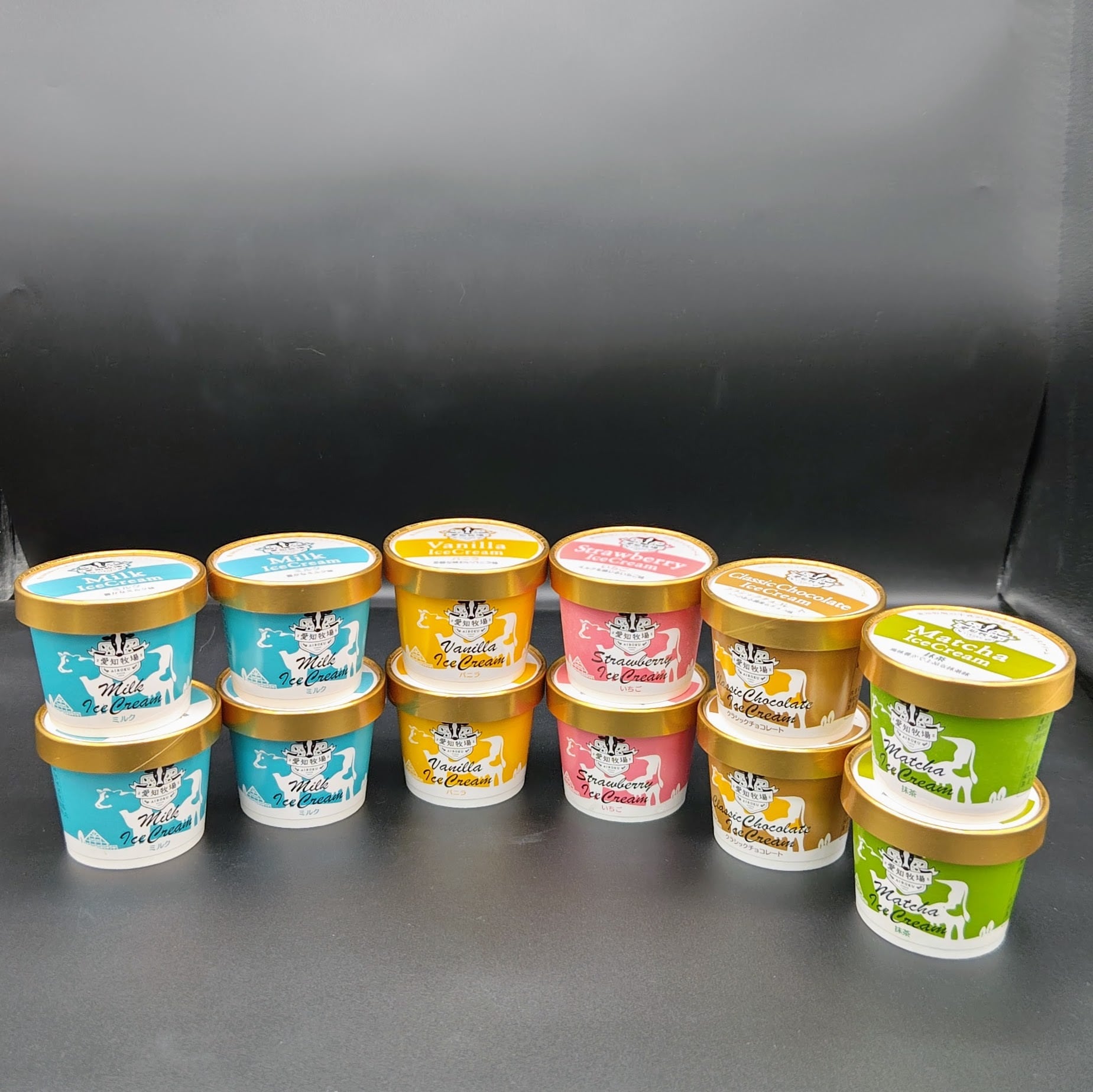 選べる5種のフレーバー、こだわりの贅沢アイスクリームです。(ミルク バニラ チョコ